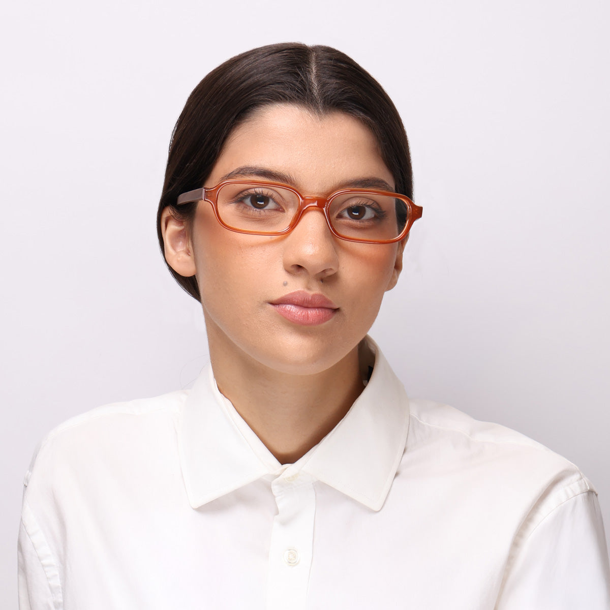 Armação retangular fina, discreta e charmosa. Com design minimalista, linhas retas e cantos suaves, esse modelo transita despretensiosamente entre o estilo clássico e o fashion. Ideal para rostos médios a grandes.