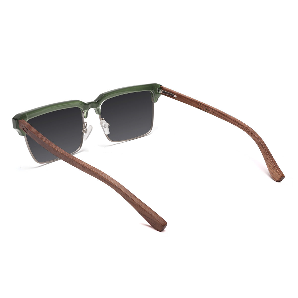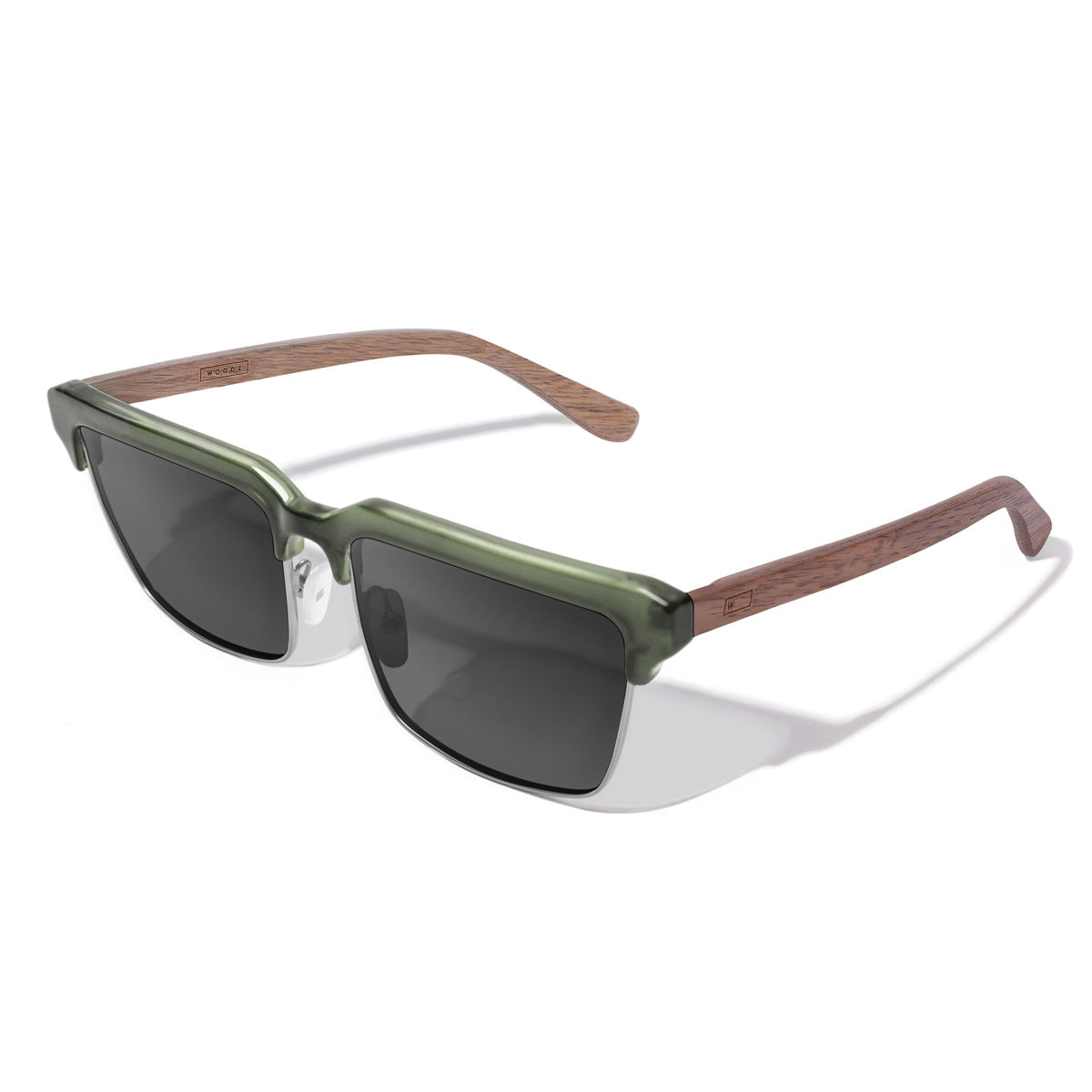 Material: Frente de Bio acetato italiano M49 da Mazzucchelli, de origem vegetal renovável, livre de derivados petroquímicos. Hastes em madeira Walnut de reflorestamento.