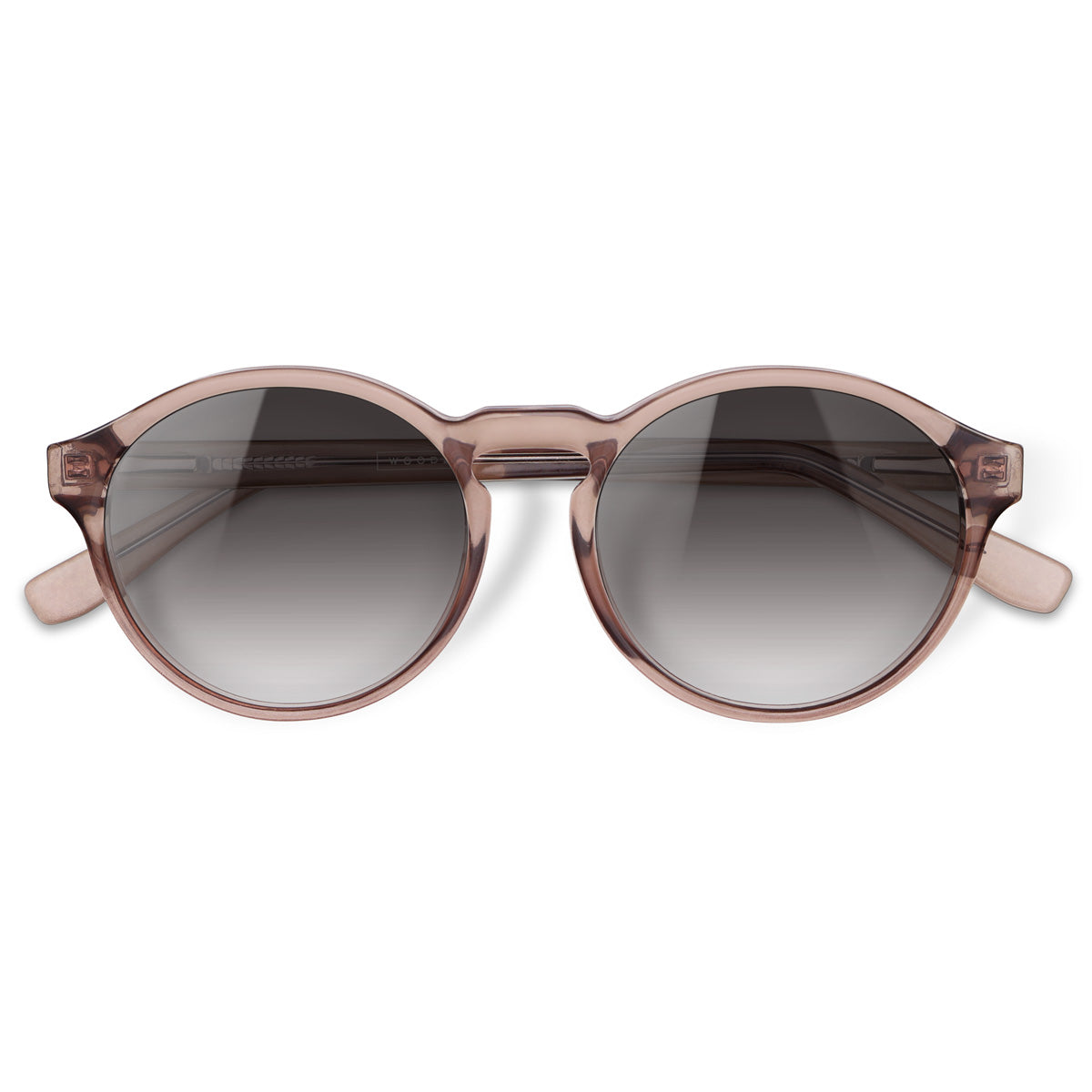 Champagne, em Bio Acetato com haste de Madeira e lente Marrom Degradê.