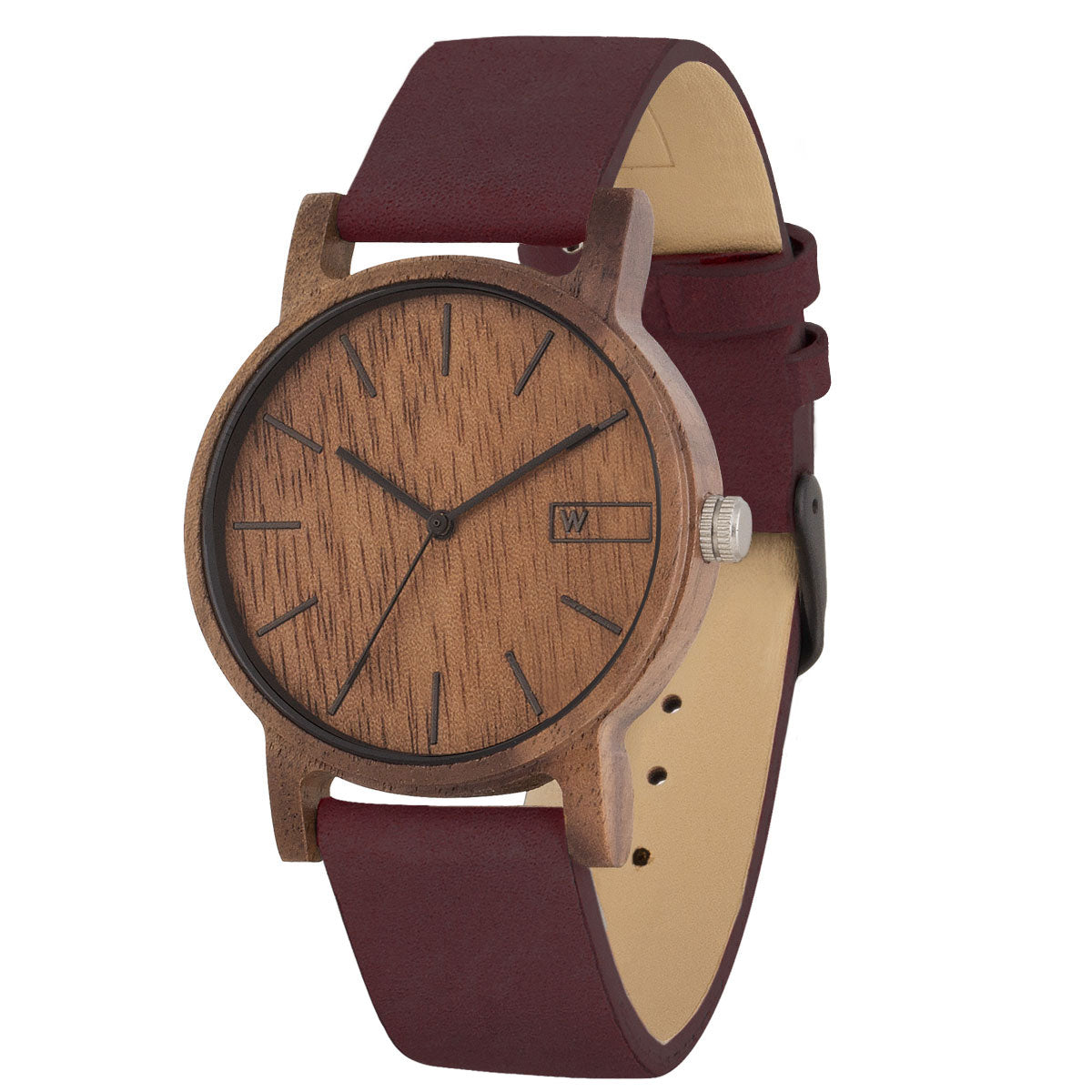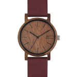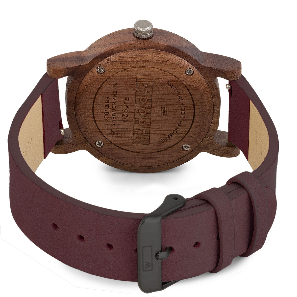 Relógio de Madeira | Woodz Eko Nut (Pulseira Couro Bordô)