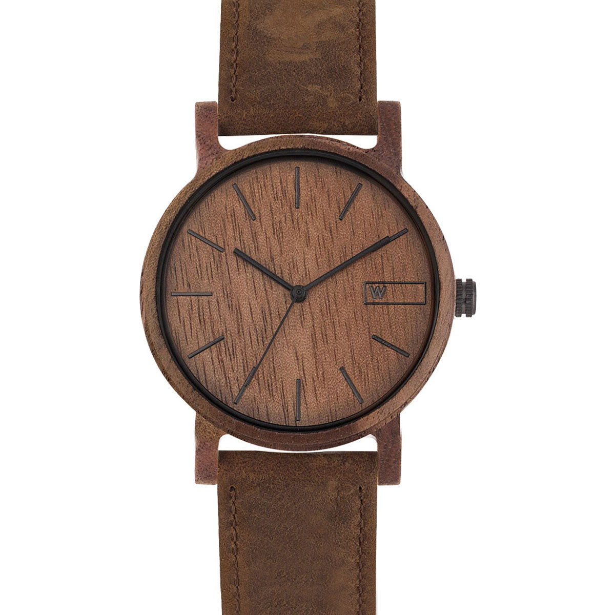 Relógio básico e versátil todo em madeira Walnut de reflorestamento. Pode ser combinado com diversas outras opções de pulseira intercambiáveis para você mudar seu estilo conforme a ocasião.