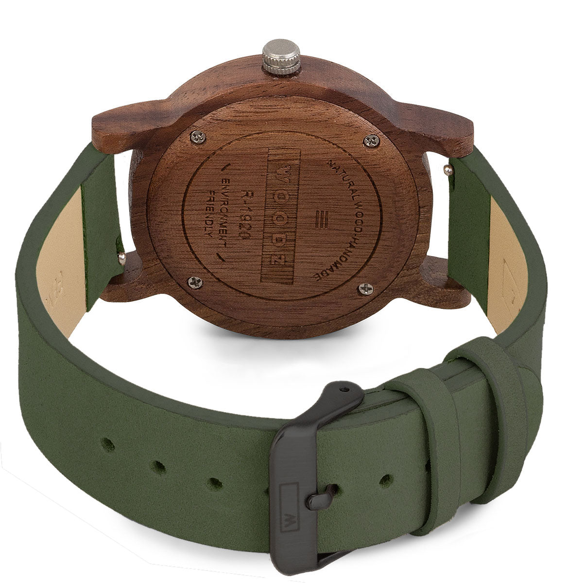 Relógio de Madeira | Woodz Eko Nut (Pulseira Couro Verde)