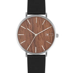Relógio de Aço com Madeira | Woodz Moon Nut (Pulseira de Couro Preto)