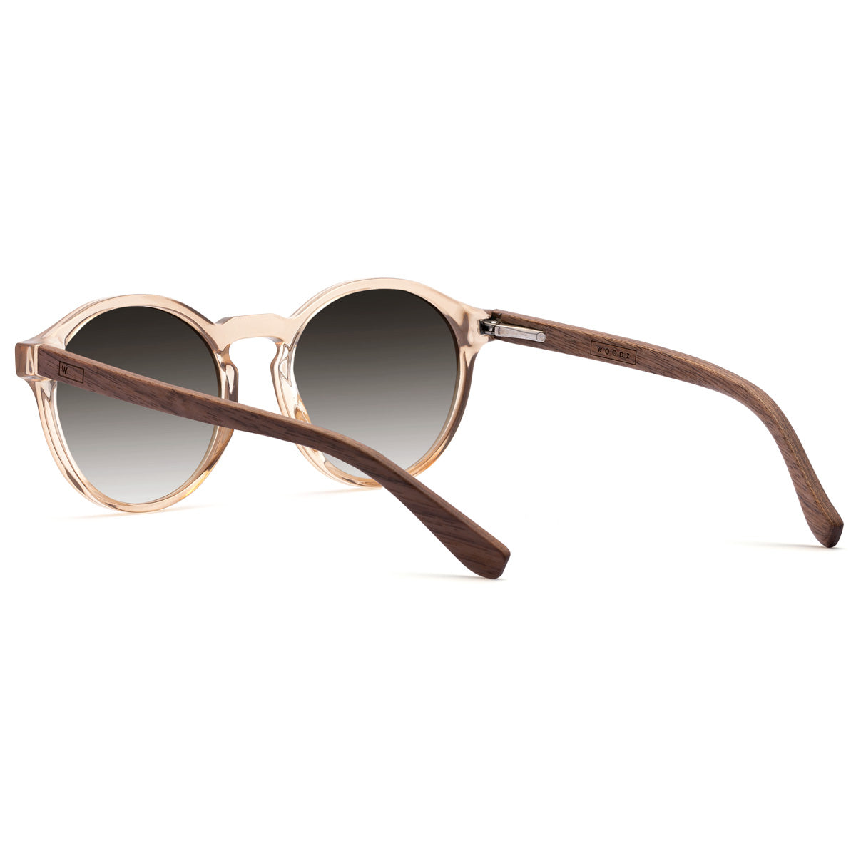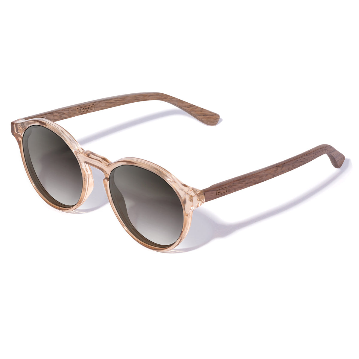 Champagne, em Bio Acetato com haste de Madeira e lente Marrom Degradê.