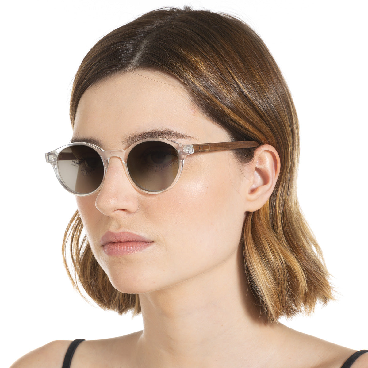 Óculos de Sol de Acetato com Madeira Nino Cristal