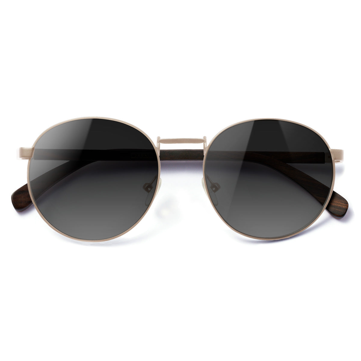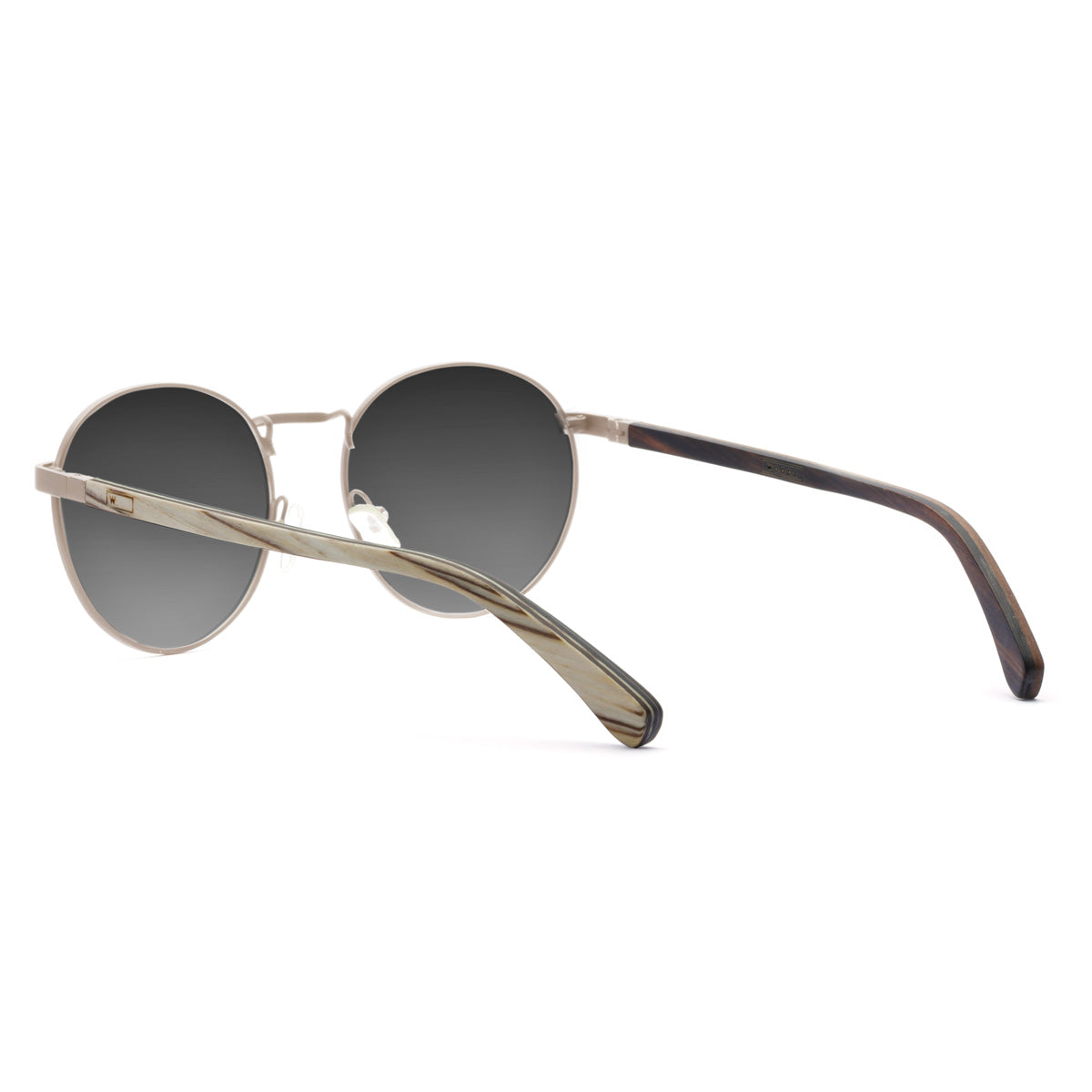 Óculos de Sol de Metal com Madeira Redondo Grande Prata