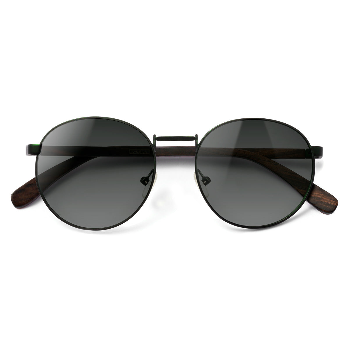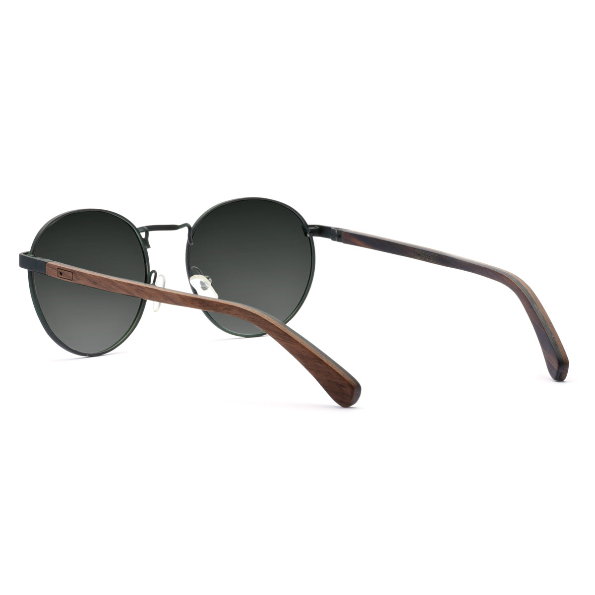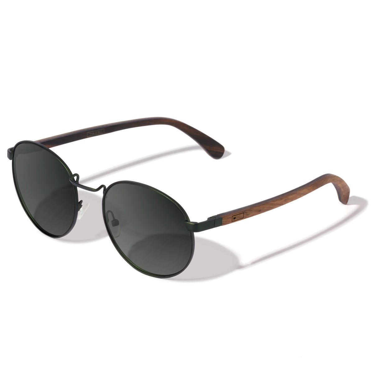 Óculos de Sol de Metal com Madeira Redondo Médio Verde