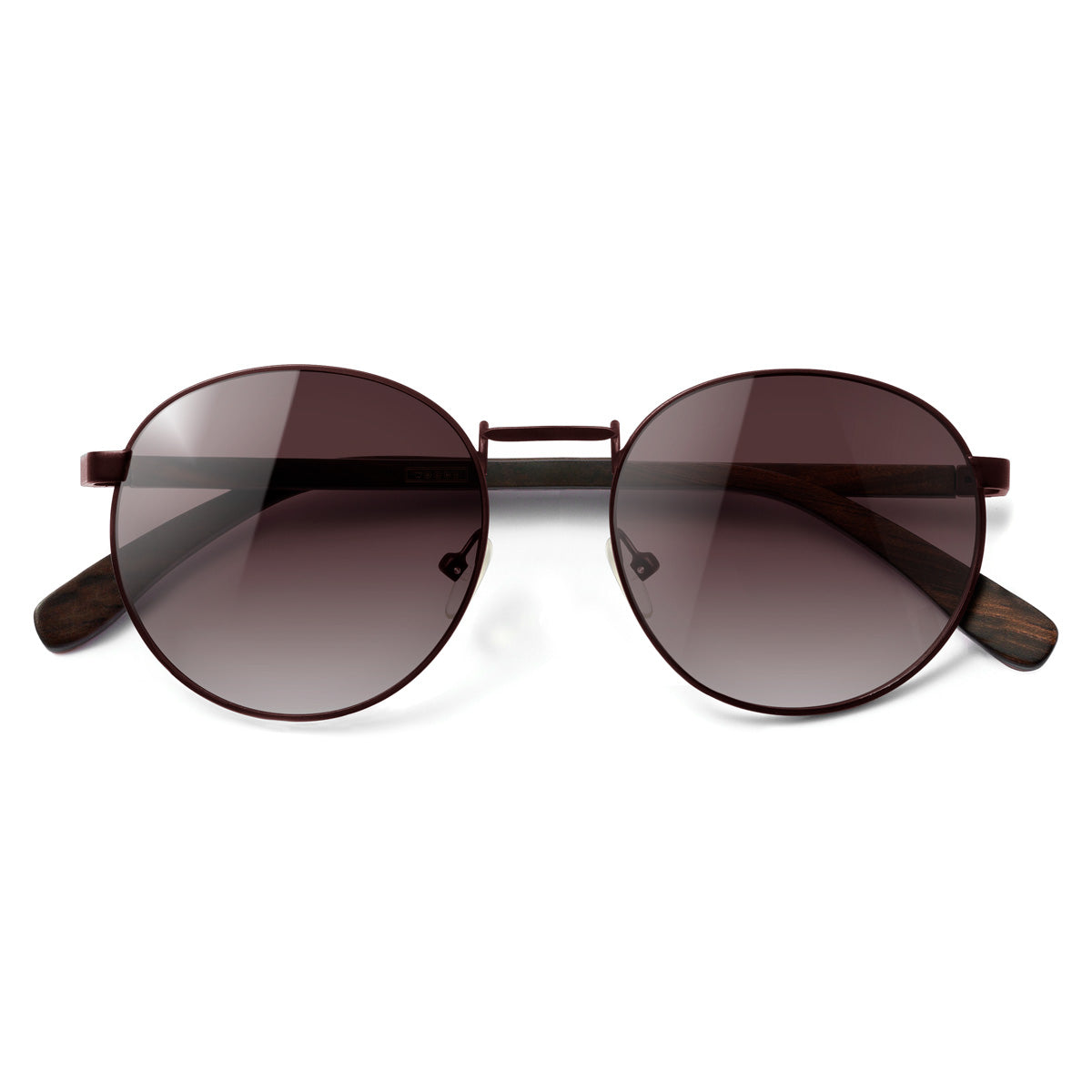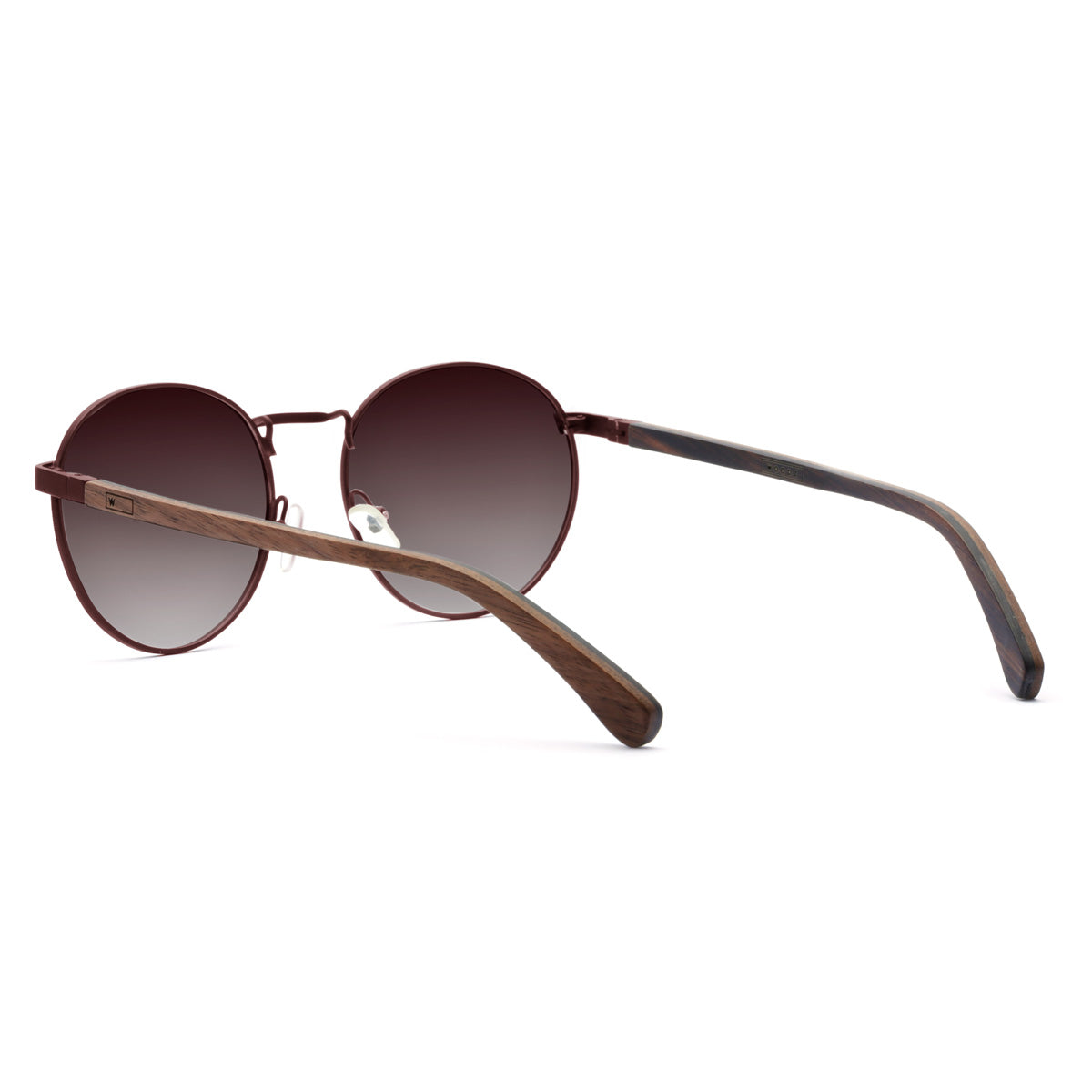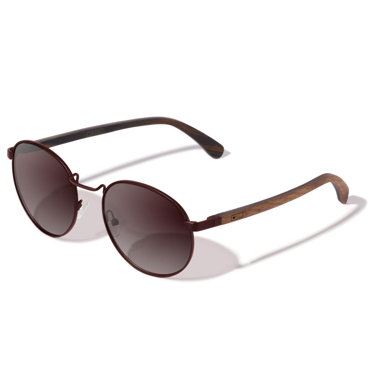 Óculos de Sol de Metal com Madeira Redondo Médio Vinho