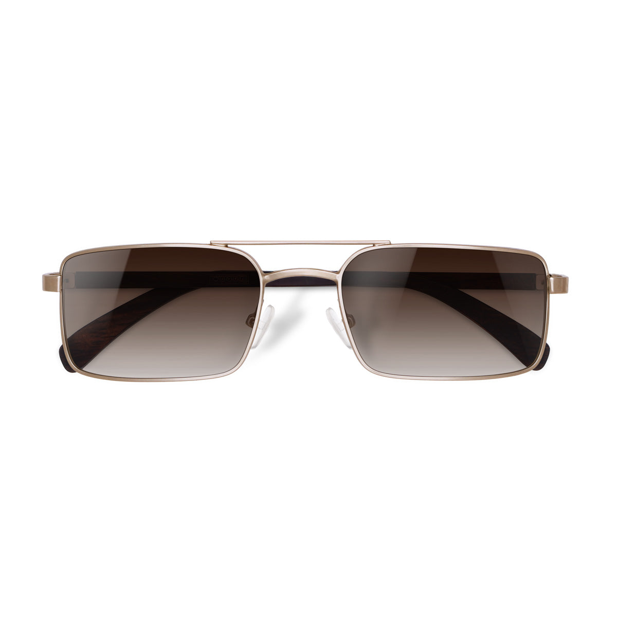 Óculos de Sol de Metal com Madeira Retangular Dourado