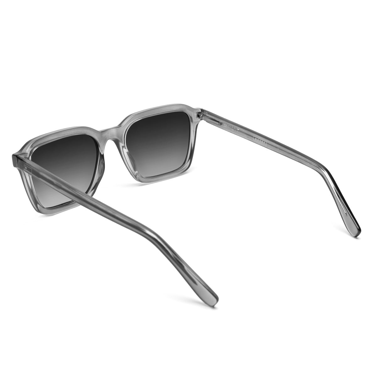 Óculos Reno Black solar com haste de acetato em modelo com rosto médio.