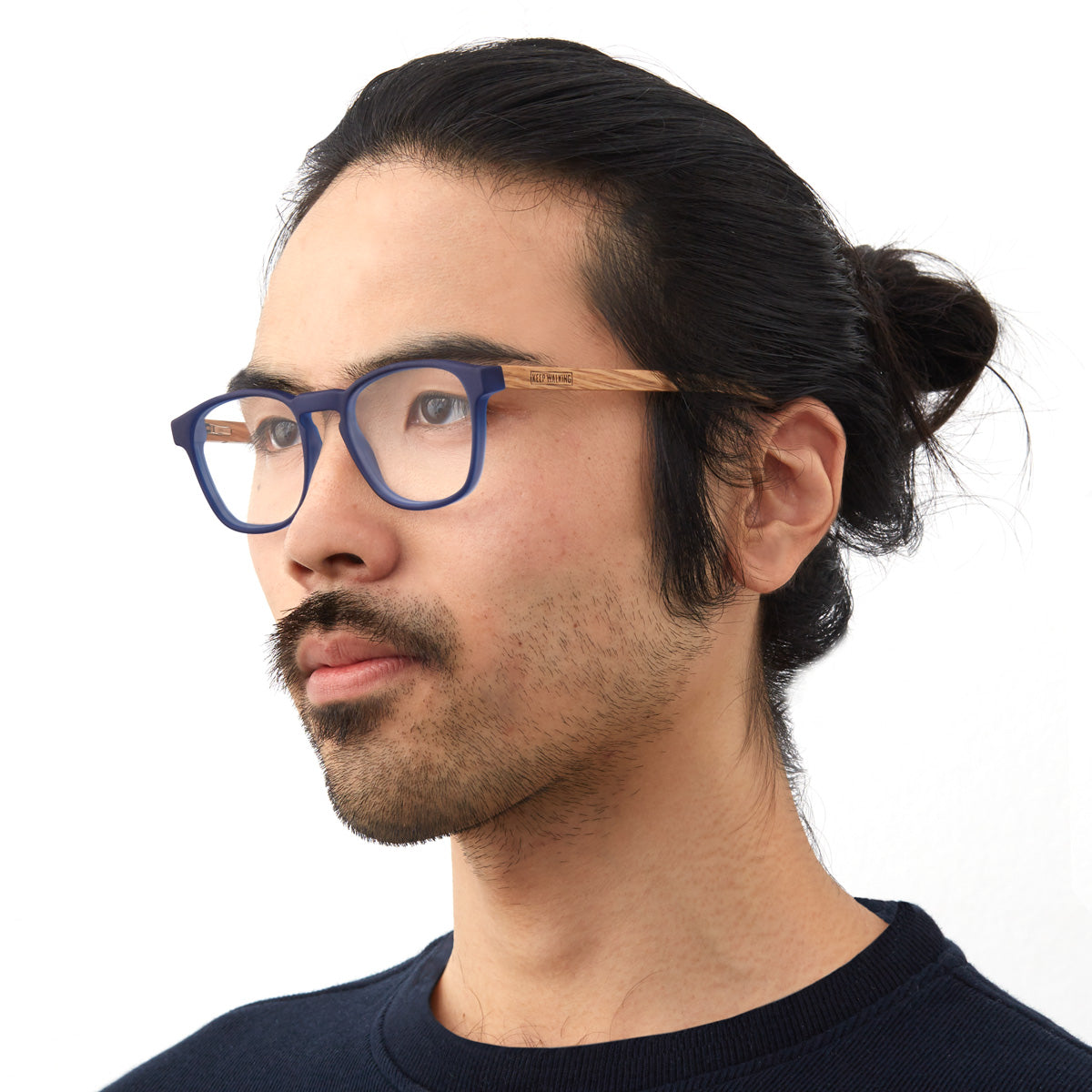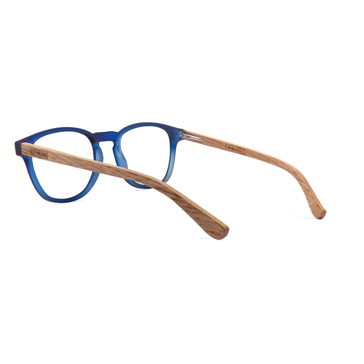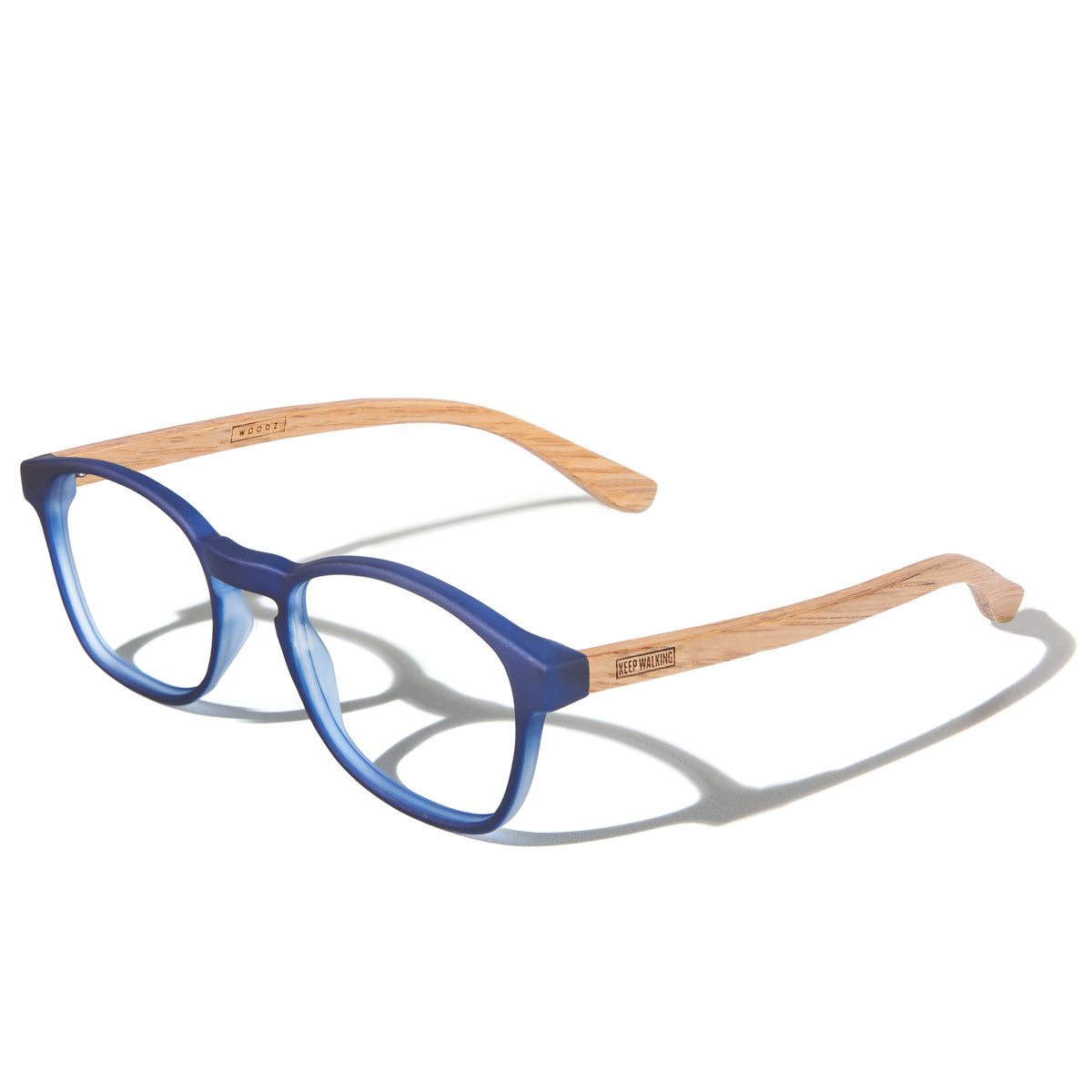 Olli da Coleção Especial Woodz x Johnnie Walker com a frente de bio acetato e haste de madeira reciclada do barril de whisky, na cor Blue Label.