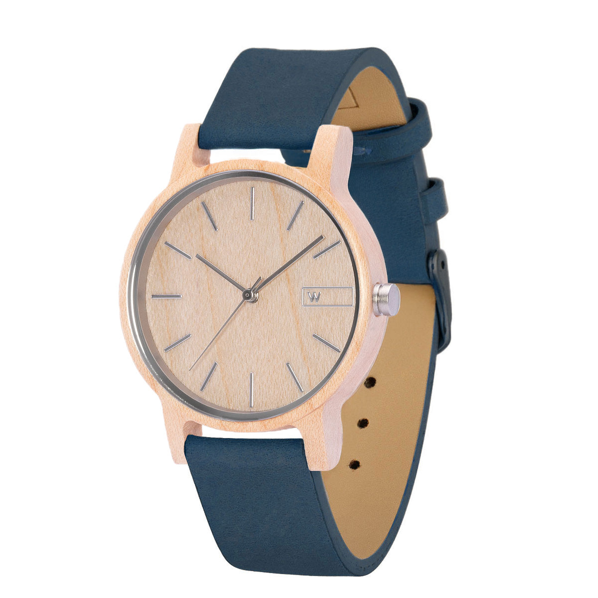 Relógio de Madeira | Woodz Vita (Pulseira de Couro Azul)