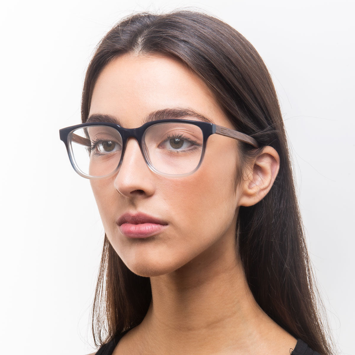 • Material: Frente de Bio acetato italiano M49 da Mazzucchelli, de origem vegetal renovável, livre de derivados petroquímicos. Hastes em madeira Walnut de reflorestamento.