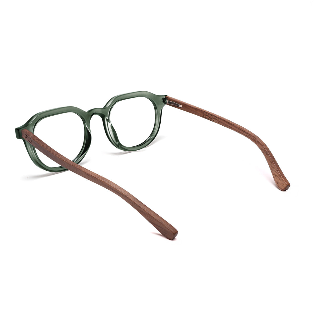 Material: Frente de Bio acetato italiano M49 da Mazzucchelli, de origem vegetal renovável, livre de derivados petroquímicos. Hastes em madeira Walnut de reflorestamento.