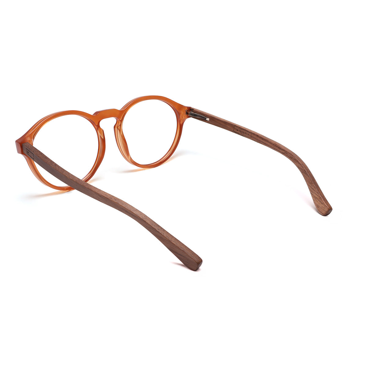 Material: Frente de Bio acetato italiano M49 da Mazzucchelli, de origem vegetal renovável, livre de derivados petroquímicos. Hastes em madeira Walnut de reflorestamento.