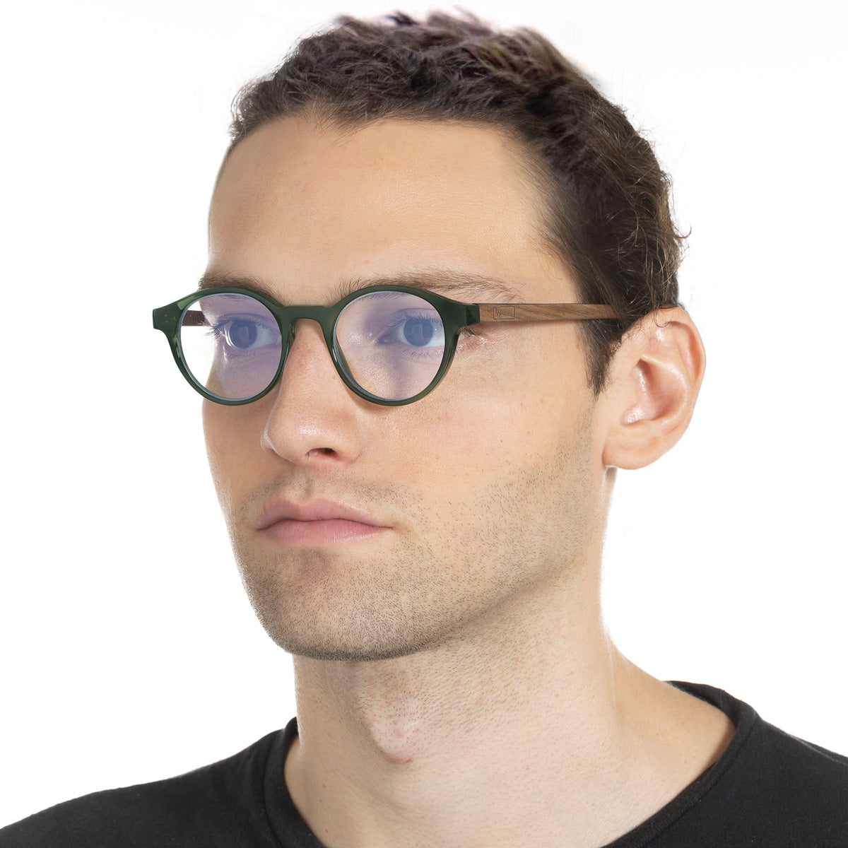 Armação Nino Menta em modelo com rosto médio.