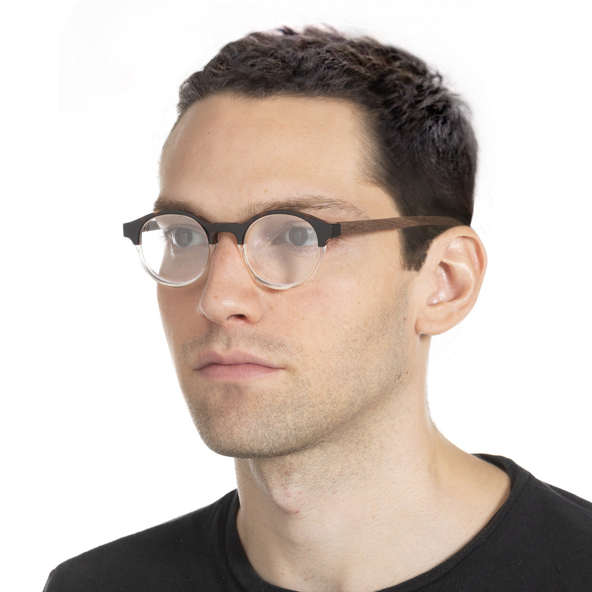 Armação Nino Black Degrade em modelo com rosto médio.