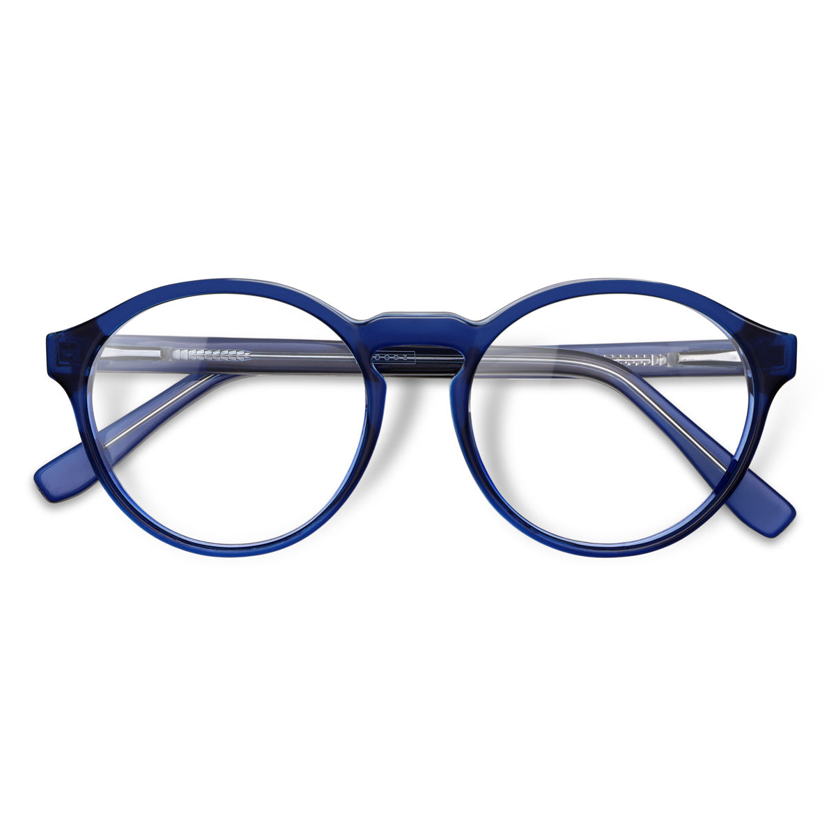 Design redondo clássico em tamanho grande, mas com espessura fina e leve, ideal para quem tem rosto médio para grande.