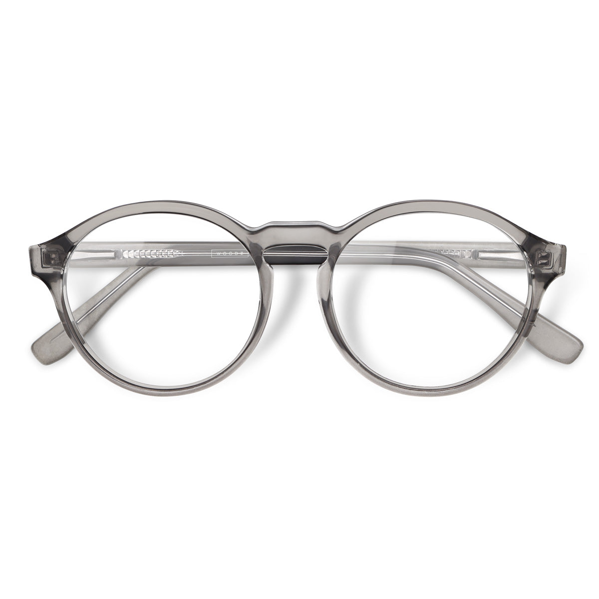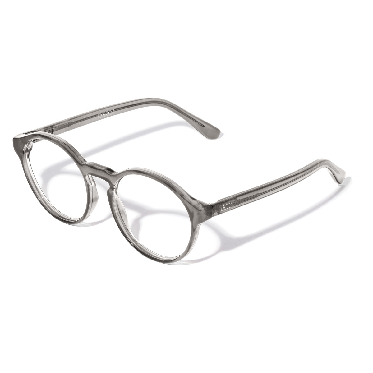 Design redondo clássico em tamanho grande, mas com espessura fina e leve, ideal para quem tem rosto médio para grande.