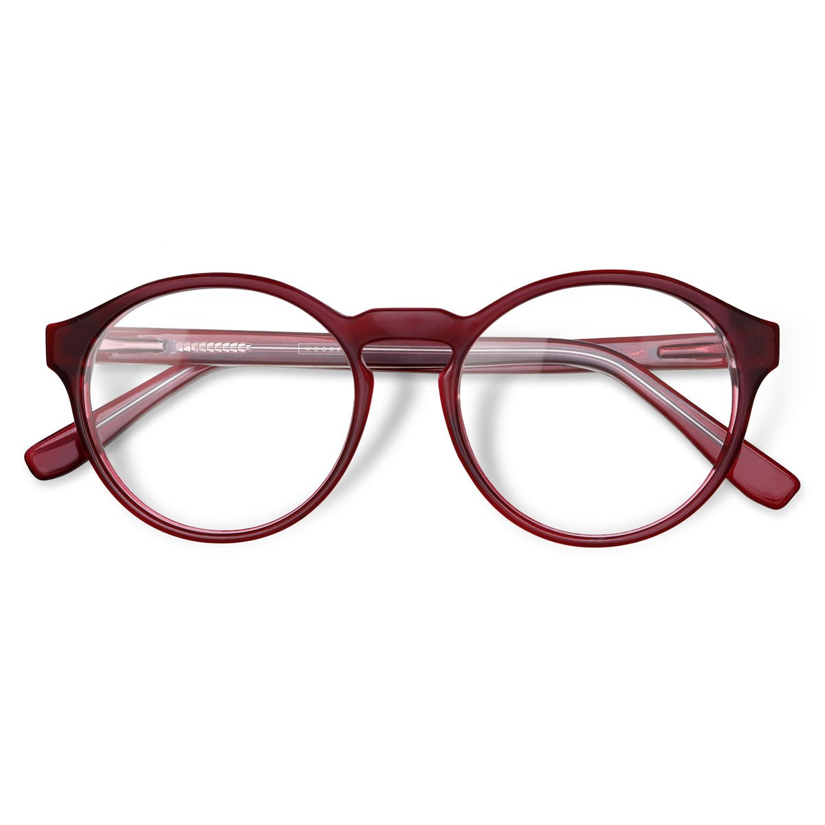 Design redondo clássico em tamanho grande, mas com espessura fina e leve, ideal para quem tem rosto médio para grande.