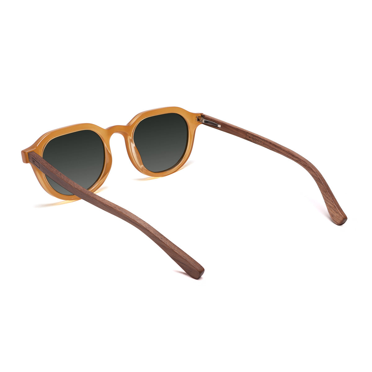 Óculos de Sol de Acetato com Madeira Davos Amarelo Ocre