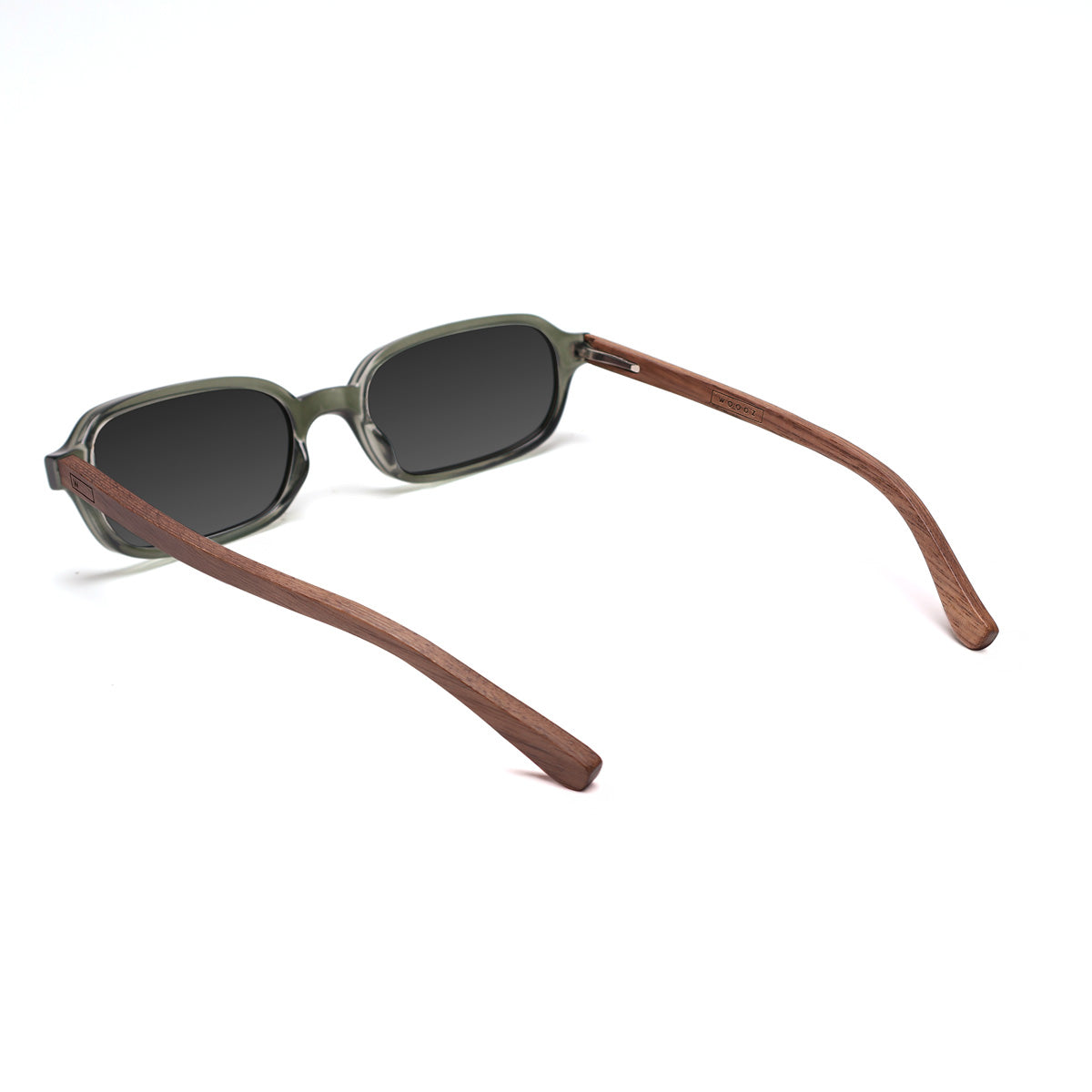 Material: Frente de Bio acetato italiano M49 da Mazzucchelli, de origem vegetal renovável, livre de derivados petroquímicos. Hastes em madeira Walnut de reflorestamento.