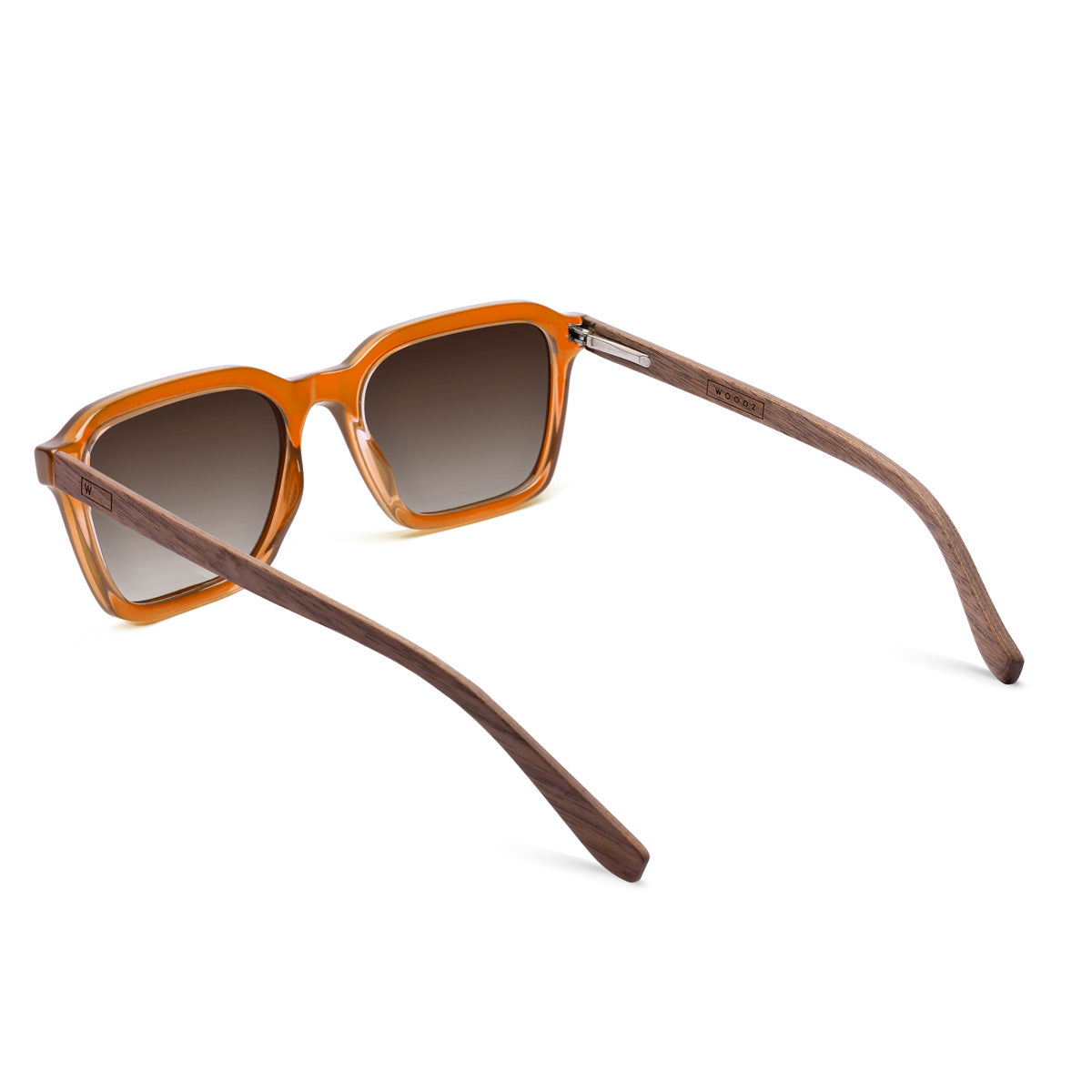 Material: Frente de Bio acetato italiano M49 da Mazzucchelli, de origem vegetal renovável, livre de derivados petroquímicos. Hastes em madeira Walnut de reflorestamento.