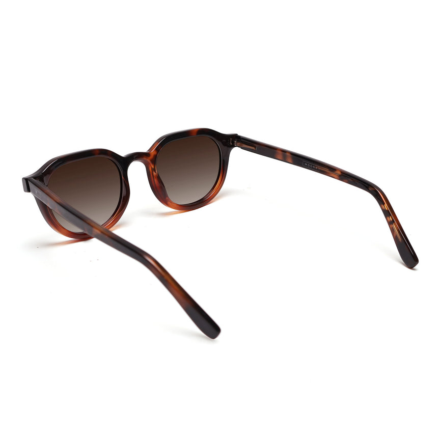 Óculos Davos Tortoise solar com haste de acetato em modelo com rosto médio.