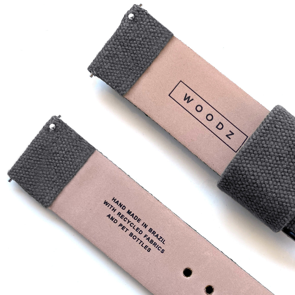Pulseira de lona feita com garrafa PET reciclada (rPET) na cor cinza, para dar um toque mais autêntico e despojado ao seu relógio.