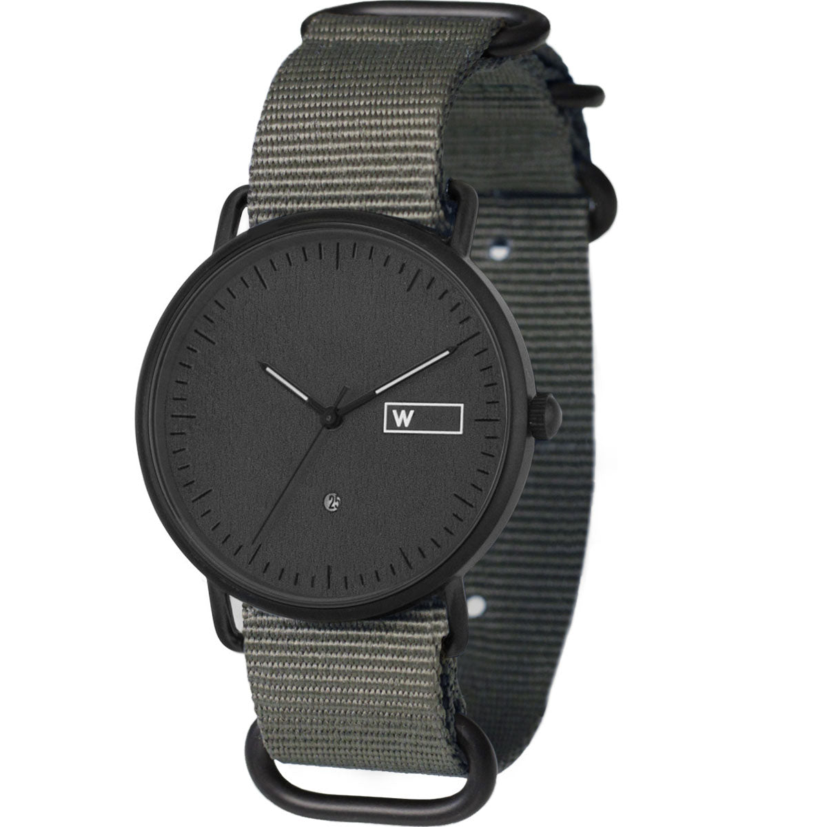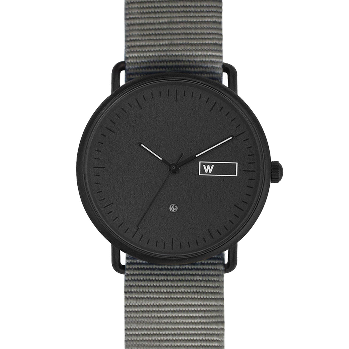 Relógio de Aço com Madeira Ox Black Pulseira Nato Cinza