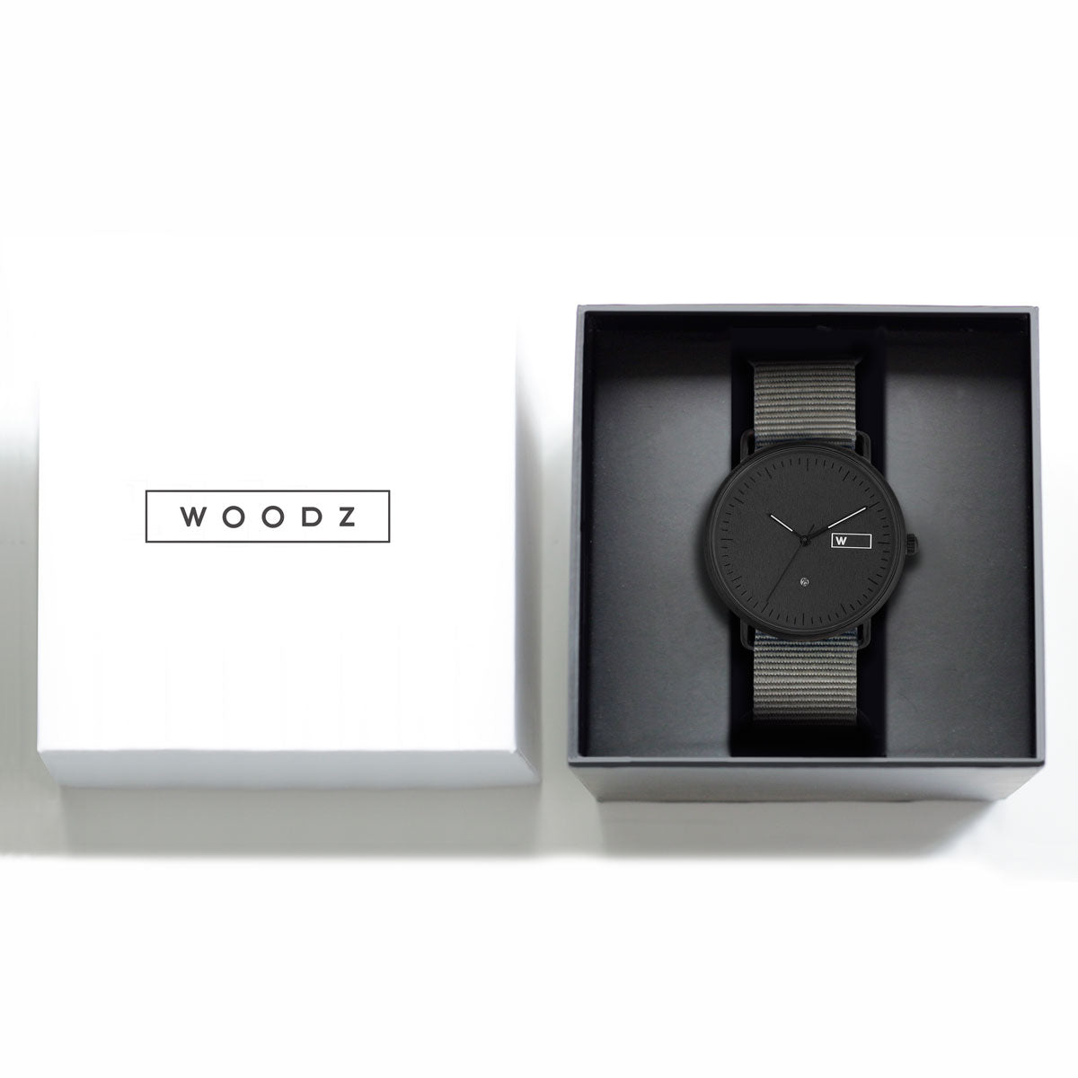 Relógio de Aço com Madeira | Woodz Ox Black (Pulseira Nato Cinza)