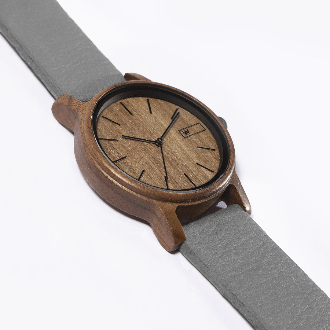 Relógio de Madeira | Woodz Eko Nut (Pulseira Pinatex Cinza)